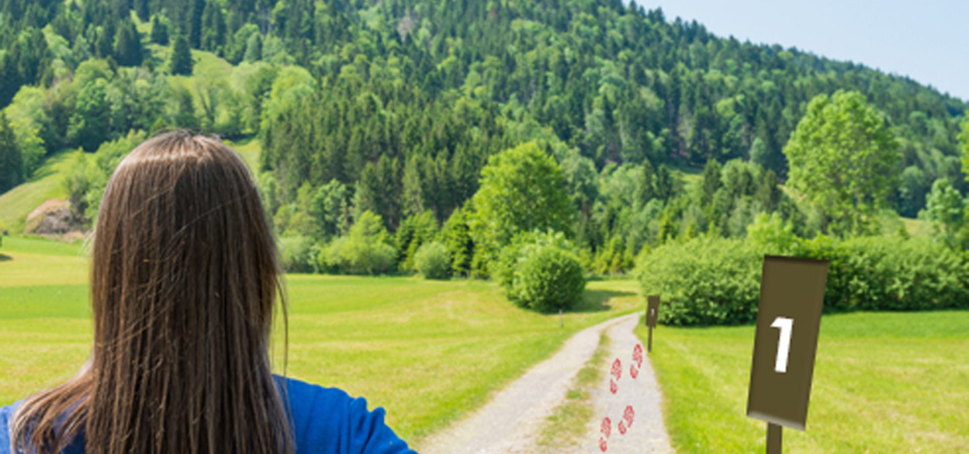 Am Embodiment-Parcours experimentieren Sie mit wohltuenden Signalen und Ideen Ihres Körpers: Sie können sich vom Alltag entschleunigen, erholen sich und schöpfen Kraft aus den Möglichkeiten Ihres Körpers. In der einmaligen Atmosphäre der Bad Dürrheimer Wälder wandern Sie von Impulstafel zu Impulstafel mit neuen Ideen, Ihren Körper in Verbindung mit Ihrer Psyche zu erspüren: Körper wirkt auf Psyche! Lassen Sie sich überraschen. Nutzen Sie die einzelnen Impulse, Ihren Körper neu zu erleben und vor allem seine Wirkung auf Ihre Stimmung und Gedanken wahrzunehmen.